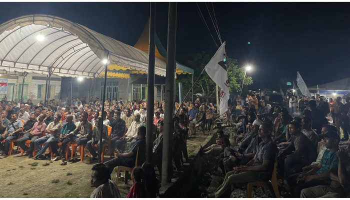 Suka Makmue - Ribuan simpatisan dan pendukung Pasangan Calon (Paslon) Bupati dan Wakil Bupati Nagan Raya Asib Amin - Tarmilin Usman hadir dalam silaturahmi di Gampong Serba Jadi, Kecamatan Darul Makmur, Sabtu malam (19/10/2024)
